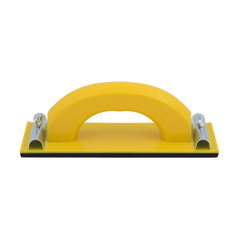 Описание и особенности: Изготовлена из ударопрочной пластмассы с резиновой поверхностью. Имеет винтовой металлический зажим, надежно фиксирующий абразивную сетку или бумагу на бруске. Оснащен винтовым зажимом для надежной фиксации.