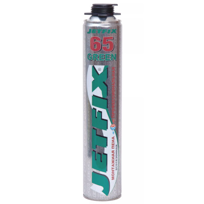 Всесезонная профессиональная монтажная пена JETFIX 65 Green объемом 800 мл — высококачественная, многосоставная, быстротвердеющая на влаге, много функциональная, полиуретановая пена. Готова к применению. Как правило адгезируется со всеми стройматериалами (исключения: полиэтилен, полипропилен, силиконы, тефлон).